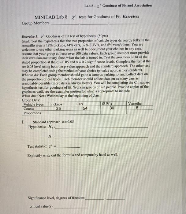 Solved Lab 8 X Goodness Of Fit And Association Minitab Lab Chegg Com