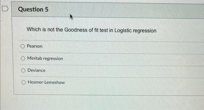 Solved Question 5 Which Is Not The Goodness Of Fit Test In Chegg Com